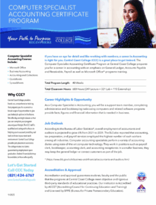 With training from Central Coast College, you can get the training you need for a successful accounting career in as few as 48 weeks!