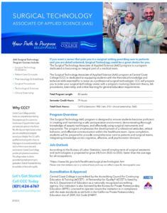 The Surgical Technology Associate of Applied Science (AAS) program prepares you to become an integral part of a medical team. At Central Coast you can get the training you need in as few as 80 weeks!