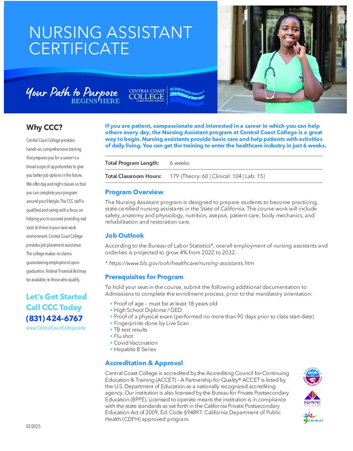 With training from Central Coast College, you can get the training you need for this rewarding healthcare career in as few as 6 weeks!
